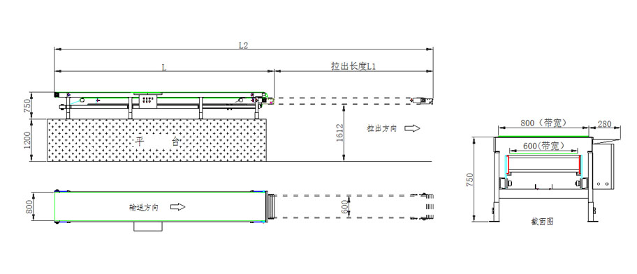 K5-A1裝貨-抽屜式皮帶輸送機規(guī)格表 , 單位:mm |