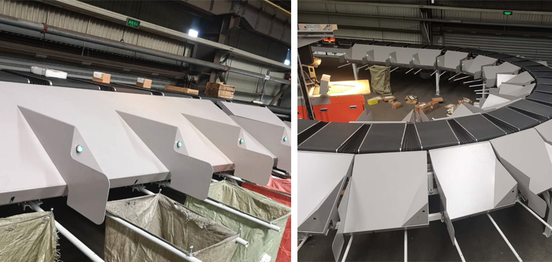 5)小車與小車之間附有蓋板,在運(yùn)行中可保持封閉承載單元之間的空隙,防止快件卡夾;