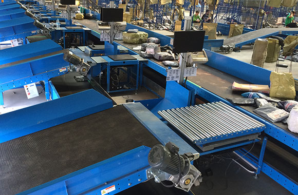 收件式輸送機(jī)、轉(zhuǎn)彎式輸送機(jī)、伸縮機(jī)等設(shè)備,應(yīng)用于快遞行業(yè),